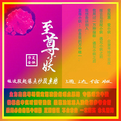 本公司长期致力于研究各种主力的手法,于无数日的数据分析,形态整理后完成了该指标系统的编程,超高成功率,购买户可以把这套至尊小妖短波段起爆点实战核心战法的选股预警指标和股票池入池出的票,反复认真学习,看这类个股的形态庄家操作手法,努力必有回报.至尊小妖短波段起爆点实战系统适用于做短波段操作.