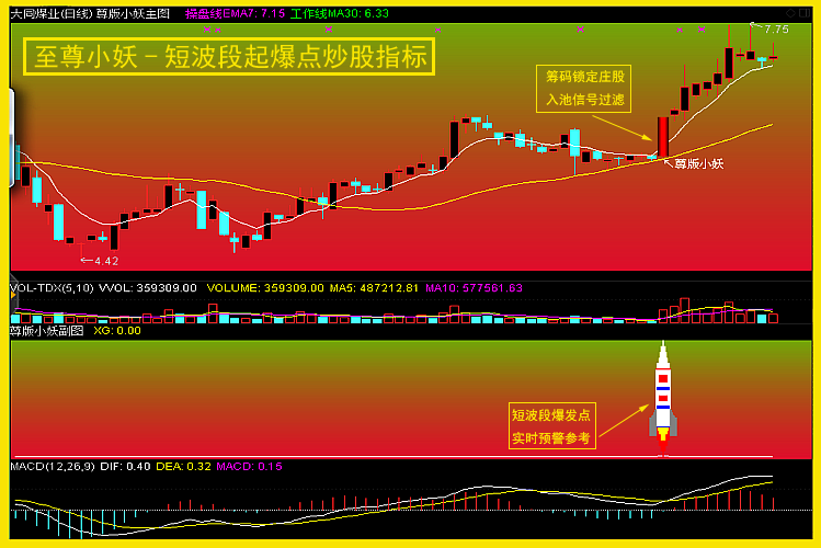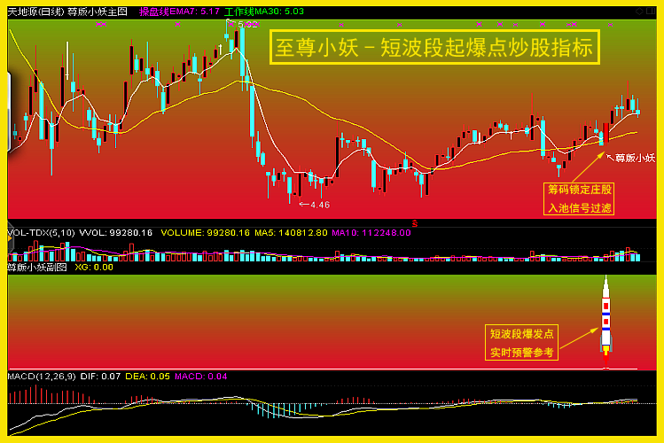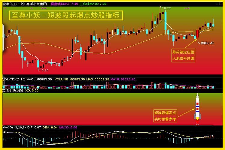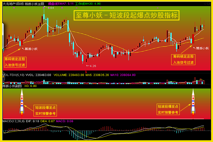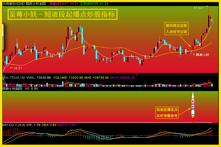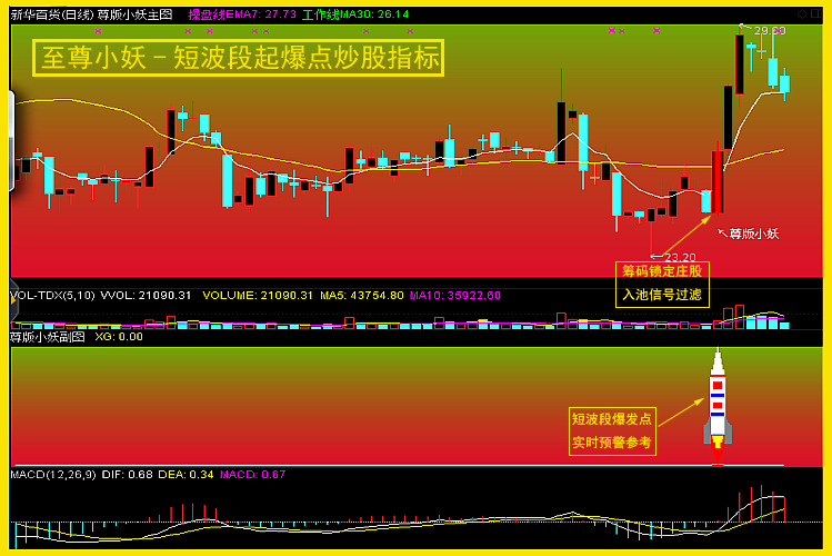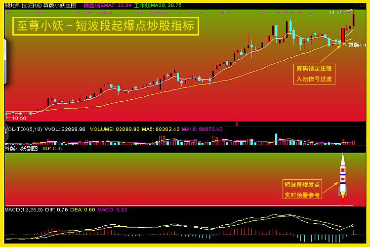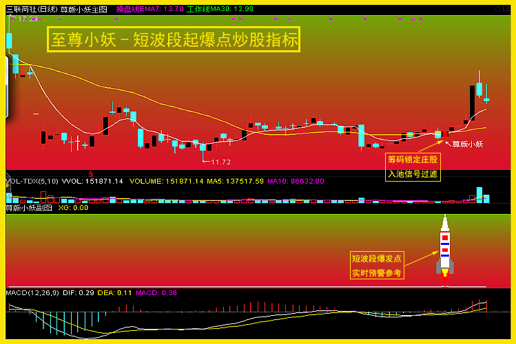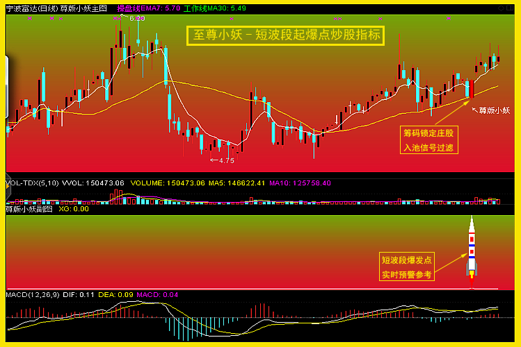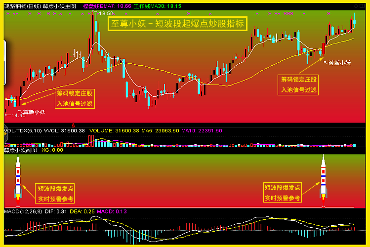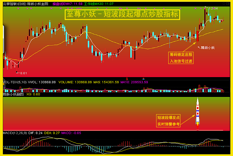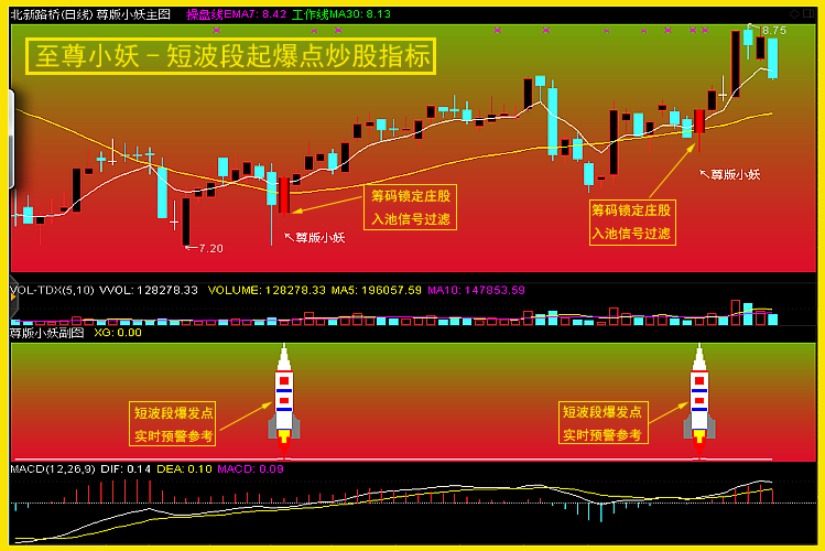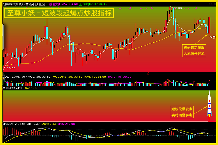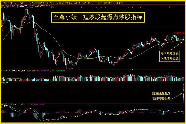 至尊小妖短波段起爆点实战系统不含未来函数,信号不会漂移,放心购买.又一款做短波段起爆点的必备神器.