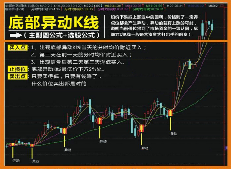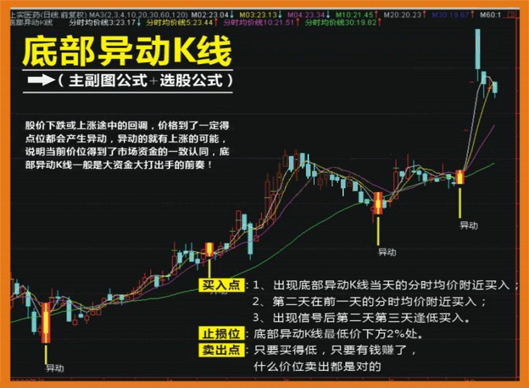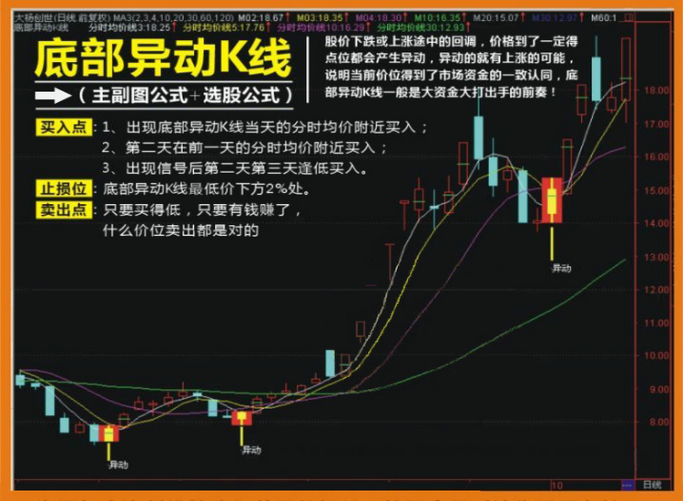 通达信炒股指标公式 底部异动K线指标 选股预警公式 |