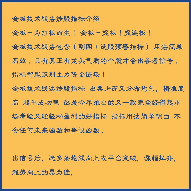 金板选股预警炒股指标 为打板而生 真正有龙头气质的个股 |