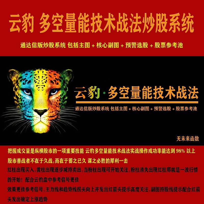云豹多空量能系统为一主图三副图一选股和参考型股票池组成,预警选股交易日盘中打开即可预警,首次使用预警选股请下载完整数据,否则影响其准确性。指标不含未来函数,放心使用!