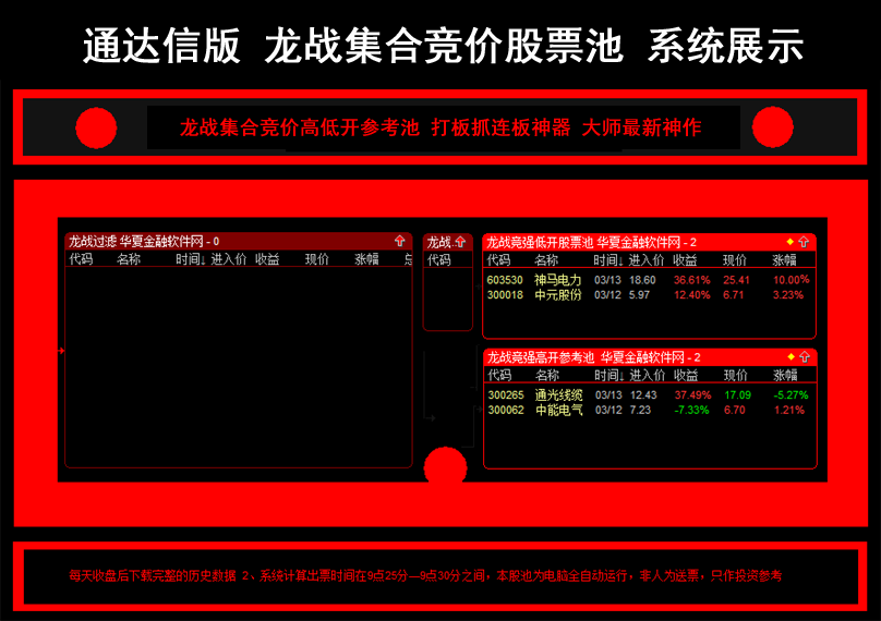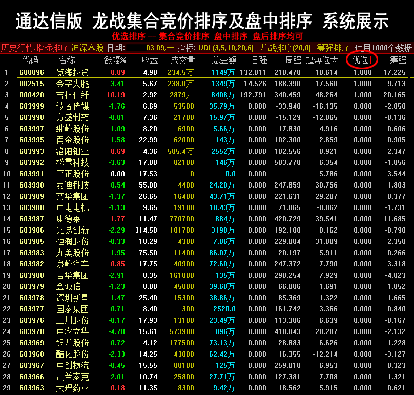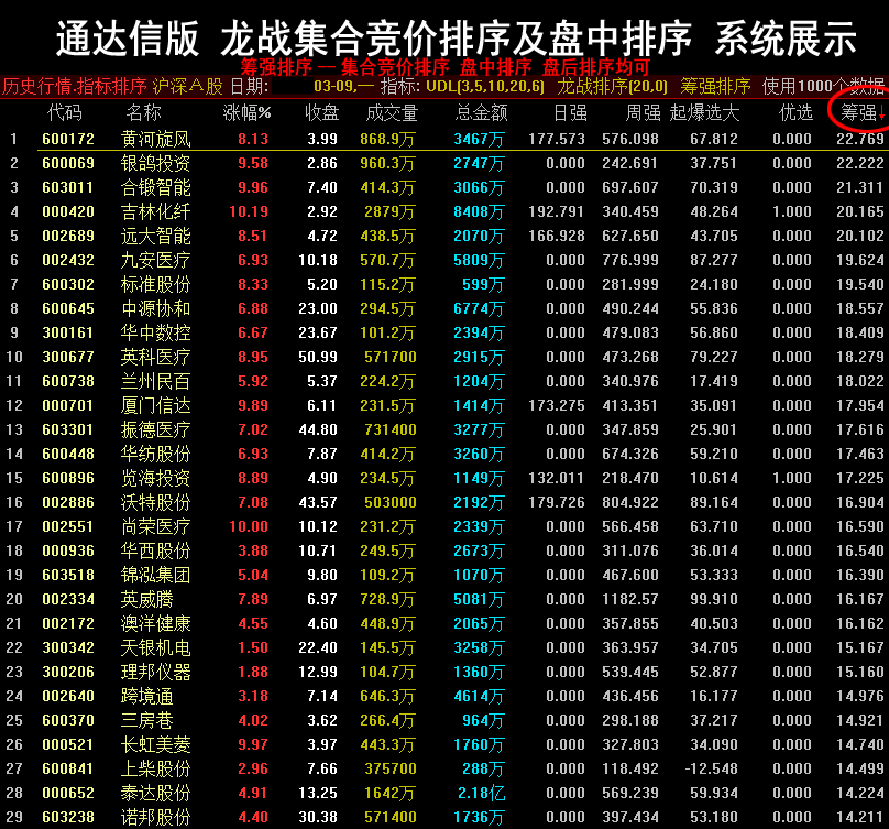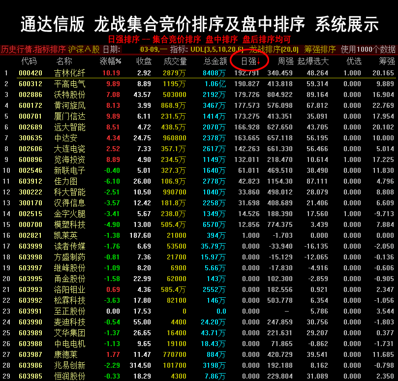 通达信炒股指标 龙战集合竞价排序系统 打板抓连板神器.. |