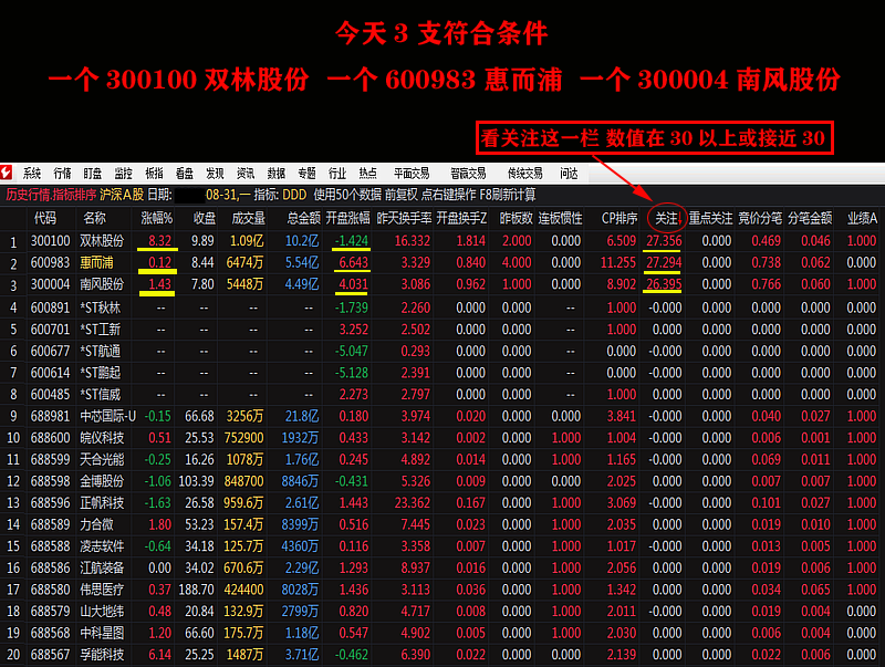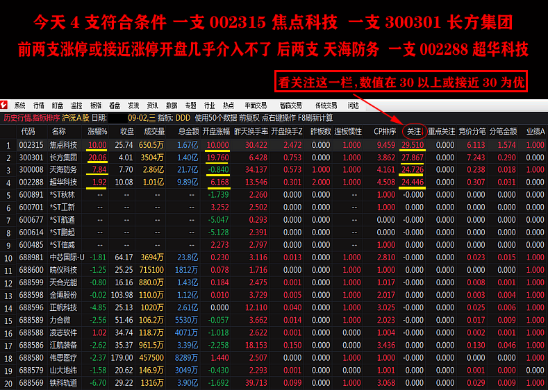 炒股指标 20个点协合竞价排序技术战法 超短线打板抓板公式 |