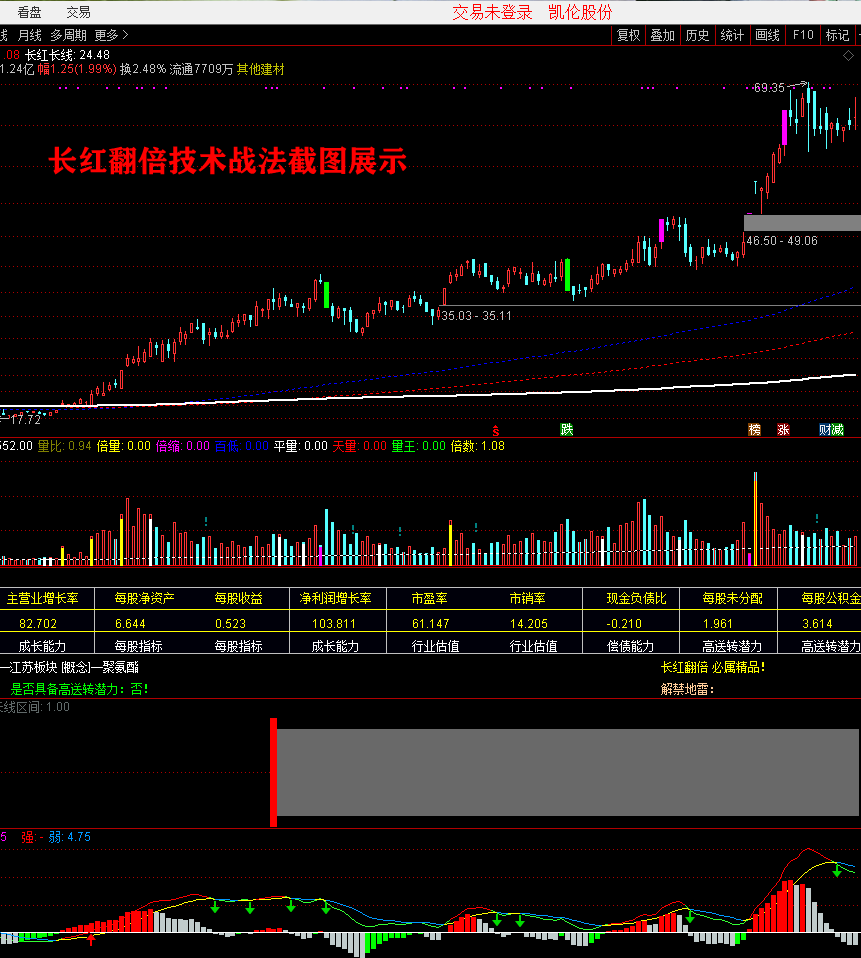 六、长红翻倍技术战法交易系统在实战中的用法: