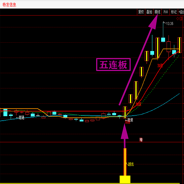 7、信号出现时涨幅已经接近涨停板的尽量不去追,如果信号形态是特别好的当日考虑杀入,也可以次日找机会做低吸。