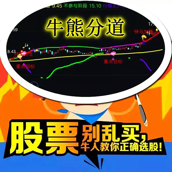 3、牛熊分道主图指标:非常优秀的牛主图指标,操作相当简单: