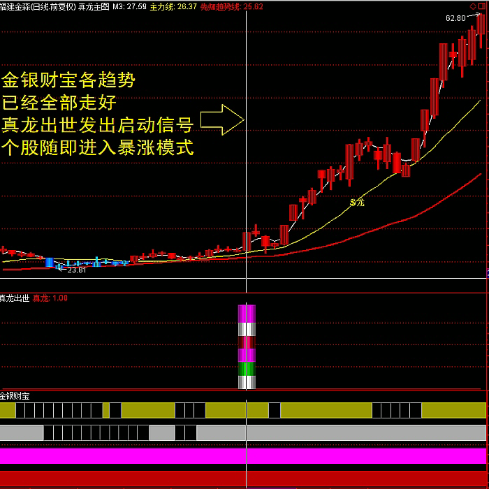 通达信炒股指标 仙人指路真龙出世金银财宝三合一综合版 |