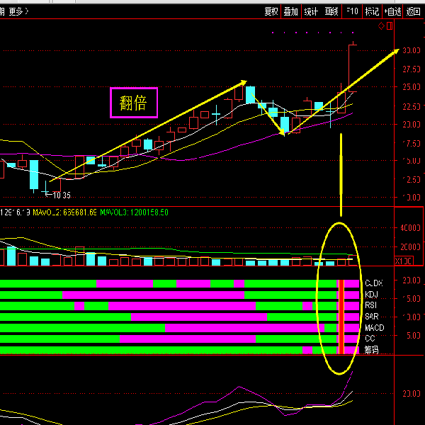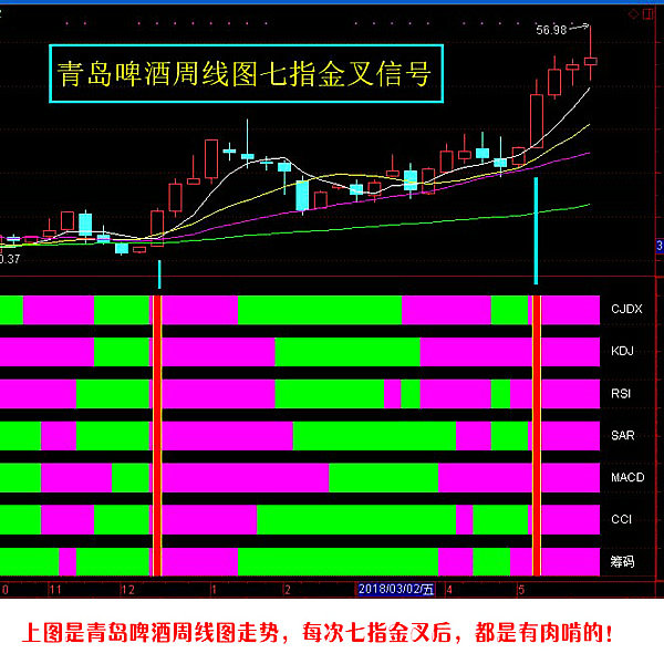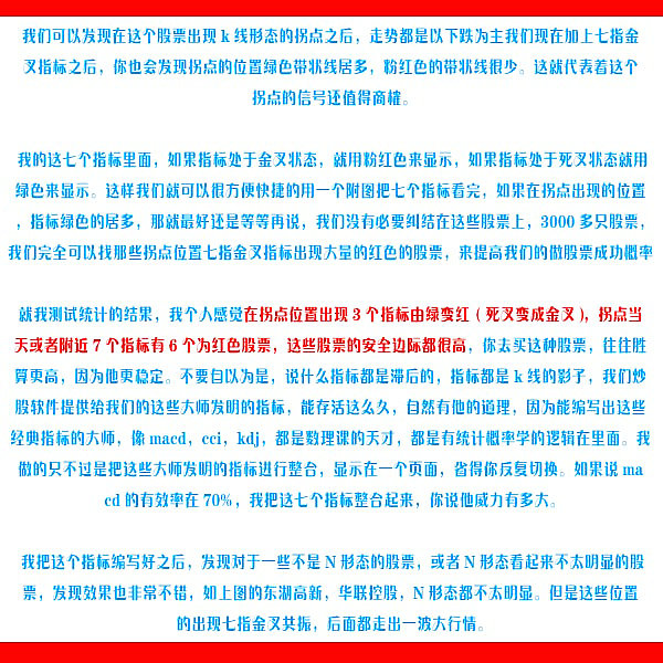 通达信炒股指标 七指金叉四喜临门共振型技术战法炒股指标 |